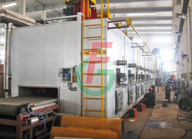 ⊙可以根據(jù)催化劑形狀及產(chǎn)量大小,設(shè)計出網(wǎng)帶寬度在600-1600mm、長度在6-30m、溫度在120-800℃之間的各型焙燒爐或干燥焙燒一體爐。