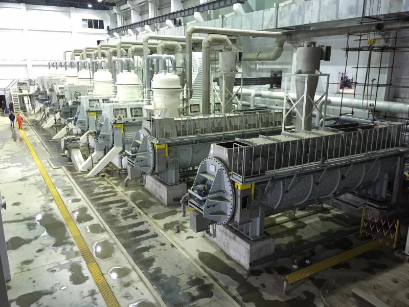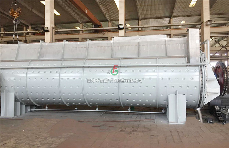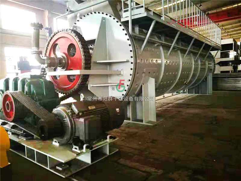2.動力消耗低、噪音小。由于干燥過程中料層很薄,主軸轉(zhuǎn)速低,物料傳送系統(tǒng)所需的功率小,電耗很少,其全套干燥裝置動力消耗僅是對流方式傳熱裝置動力消耗的1/5~1/7,且噪音很小。