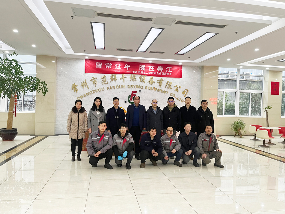 穩(wěn)崗穩(wěn)產(chǎn)助企業(yè),留人留工送溫暖。今天春江街道各位領(lǐng)導(dǎo)到我公司對留常員工進(jìn)行了慰問,送來了虎年大禮包,讓留在常州過年的外來務(wù)工人員感受到了家的溫暖。