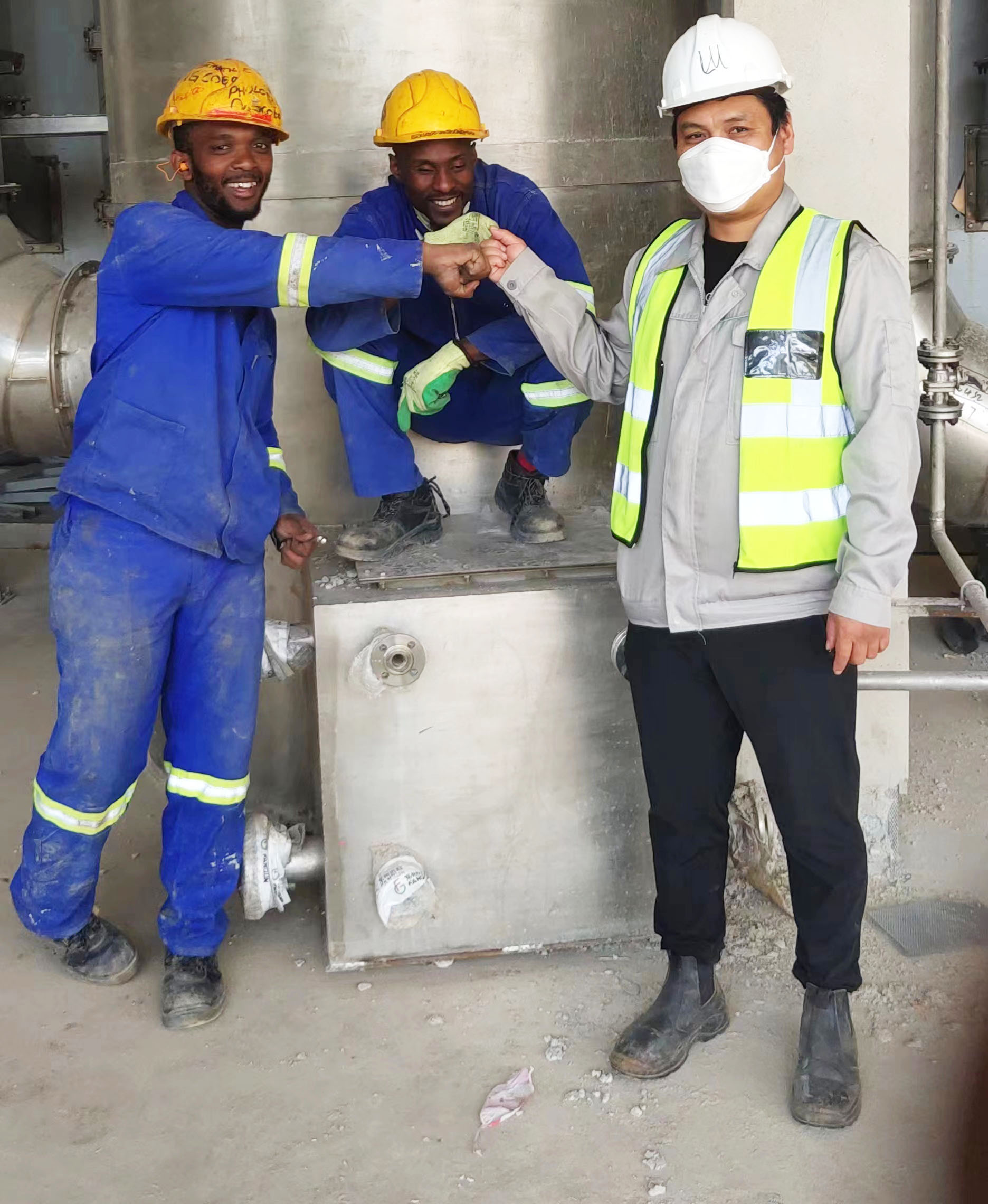 南非德班某項(xiàng)目現(xiàn)場(chǎng),一張中國(guó)面孔穿梭于土建車(chē)間?,F(xiàn)場(chǎng)還有很多在建設(shè)備,塵土漂浮在空中。他時(shí)不時(shí)地拿出手機(jī),查看中國(guó)當(dāng)?shù)貢r(shí)間,因?yàn)樗c中國(guó)項(xiàng)目經(jīng)理溝通一下項(xiàng)目進(jìn)度和安裝細(xì)節(jié)。距離簽證到期沒(méi)有多少時(shí)間了,他想盡快把收尾工作做好。雖然能與一群非洲兄弟打成一片,但離家也有段時(shí)間了,他就是來(lái)自常州市范群干燥設(shè)備有限公司的售后人員——路工。