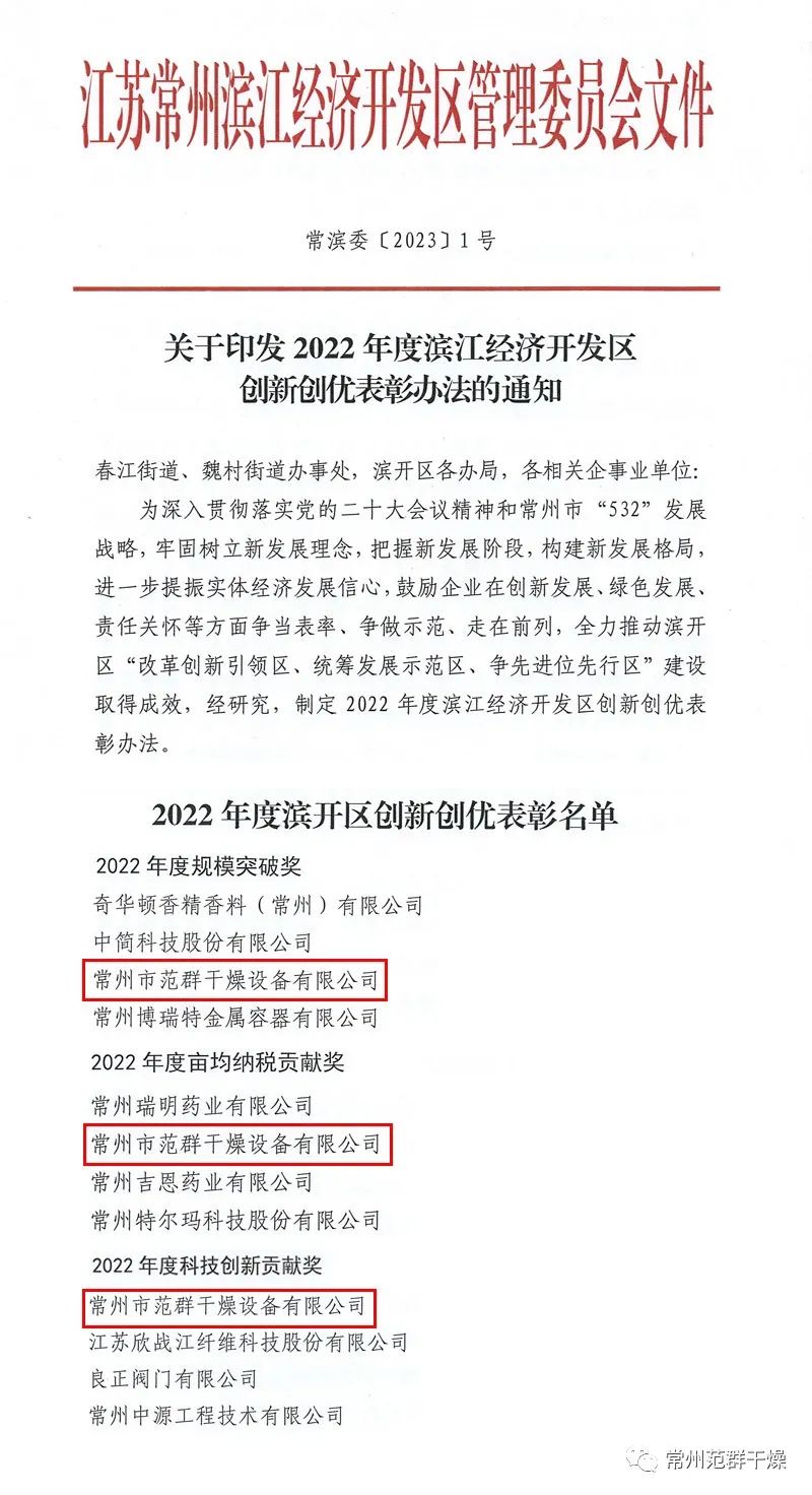 為全面貫徹落實黨的二十大精神和中央、省委經(jīng)濟工作會議及市區(qū)兩會精神,充分發(fā)揮濱開區(qū)“爭第一、創(chuàng)唯一、勇當一流”的標桿引領(lǐng)作用,1月11日,“春已至 共WE來” —濱開區(qū)2023年中外企業(yè)迎新聯(lián)誼會召開。常州范群榮獲2022年度”規(guī)模突破獎““畝均納稅貢獻獎”“科技創(chuàng)新貢獻獎”。