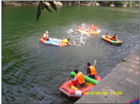 第二天早餐后我們來到了華東地區(qū)最后一篇原始森林、國(guó)家級(jí)野生動(dòng)植物自然保護(hù)區(qū)石臺(tái)牯牛降,游覽參觀國(guó)家級(jí)自然保護(hù)區(qū)、AAAA級(jí)景區(qū)石臺(tái)牯牛降龍門風(fēng)景區(qū),游覽“嚴(yán)家古村” 居住著東漢著名隱士嚴(yán)子陵的后裔,典型的徽州民居古建筑保存完好。村中有老磨房、古祠堂和寫著紅軍北上抗日直至大躍進(jìn)、文化大革命等各個(gè)時(shí)期標(biāo)語(yǔ)的“標(biāo)語(yǔ)墻”;“情人谷”三面環(huán)山,巖壁陡峭,茂林修竹、泉水淙淙,是情侶眷屬的好去處;“四疊飛瀑”象一匹碩大的四疊白練直掛崖壁,如雪似玉,曲折回環(huán),似從天來、蠟燭峰等景點(diǎn);龍門大峽谷:河馬戲鱷、“龍門潭” 潭水青碧,峽谷幽深,怪石遍布,古木如蓋,有百丈巖、滾石灘等景點(diǎn),實(shí)為大自然創(chuàng)造的“無(wú)聲的詩(shī),立體的畫”。 下午赴中國(guó)境內(nèi)最美的河流——秋浦河怪潭漂流景區(qū),在素有“詩(shī)之河”之美譽(yù)的秋浦河上游,河水常年澄碧清澈,兩岸古柳依依,峻峰林立,美景甲天下。全程采用皮劃艇體現(xiàn)參與性和互動(dòng)性讓大家更深入的親近大自然、體驗(yàn)大自然,各位同事時(shí)而泛舟前行,時(shí)而駐足打起水仗,笑聲連連不斷。