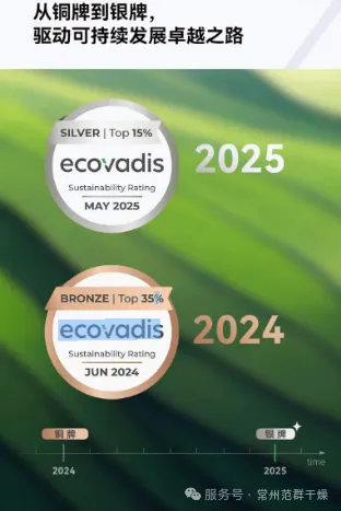 常州范群榮獲銀牌認(rèn)證,標(biāo)志著其在可持續(xù)發(fā)展及企業(yè)社會(huì)責(zé)任方面獲得國(guó)際認(rèn)可,讓常州范群在激烈的市場(chǎng)競(jìng)爭(zhēng)中脫穎而出,不僅提升了范群的聲譽(yù),還吸引了注重可持續(xù)性的合作伙伴和客戶(hù),為其贏得了市場(chǎng)先機(jī),為其可持續(xù)發(fā)展奠定了堅(jiān)實(shí)基礎(chǔ)。