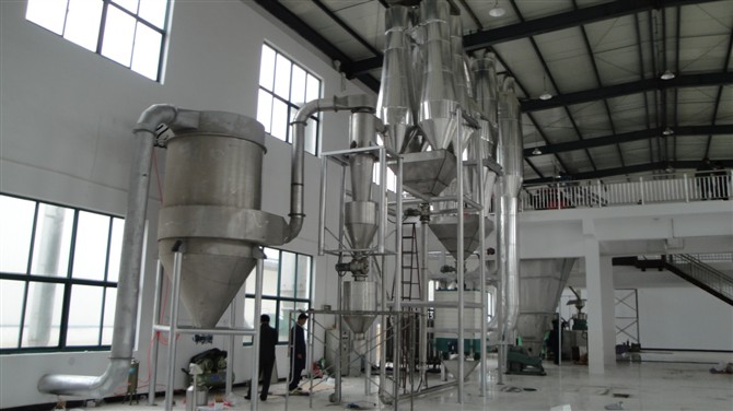 氣流干燥機是利用高速流動的熱氣流使?jié)竦矸蹜腋≡谄渲?,在氣流流動過程中進行干燥。具有傳熱系數(shù)高,傳熱面積大,干燥時間短等特點。氣流干燥也稱“瞬間干燥”是固體流態(tài)化中稀相輸送在干燥方面的應用。該法是使加熱介質(zhì)和待干燥固體顆粒直接接觸,并使待干燥固體顆粒懸浮于流體中,因而兩相接觸面積大,強化了傳熱傳質(zhì)過程,廣泛用于散狀物料的干燥單元操作。